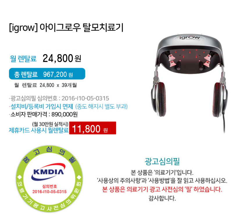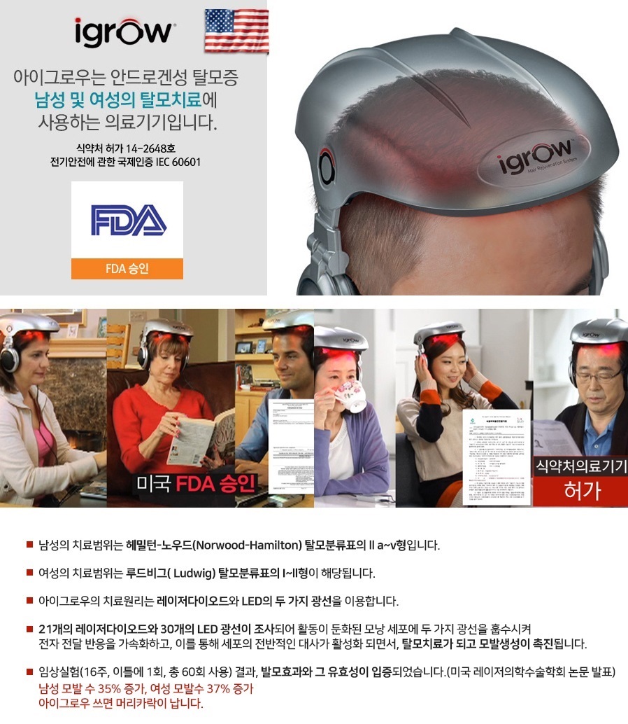 미FDA 와 한국식약처 동시승인된 탈모치료의료기기 Igrow