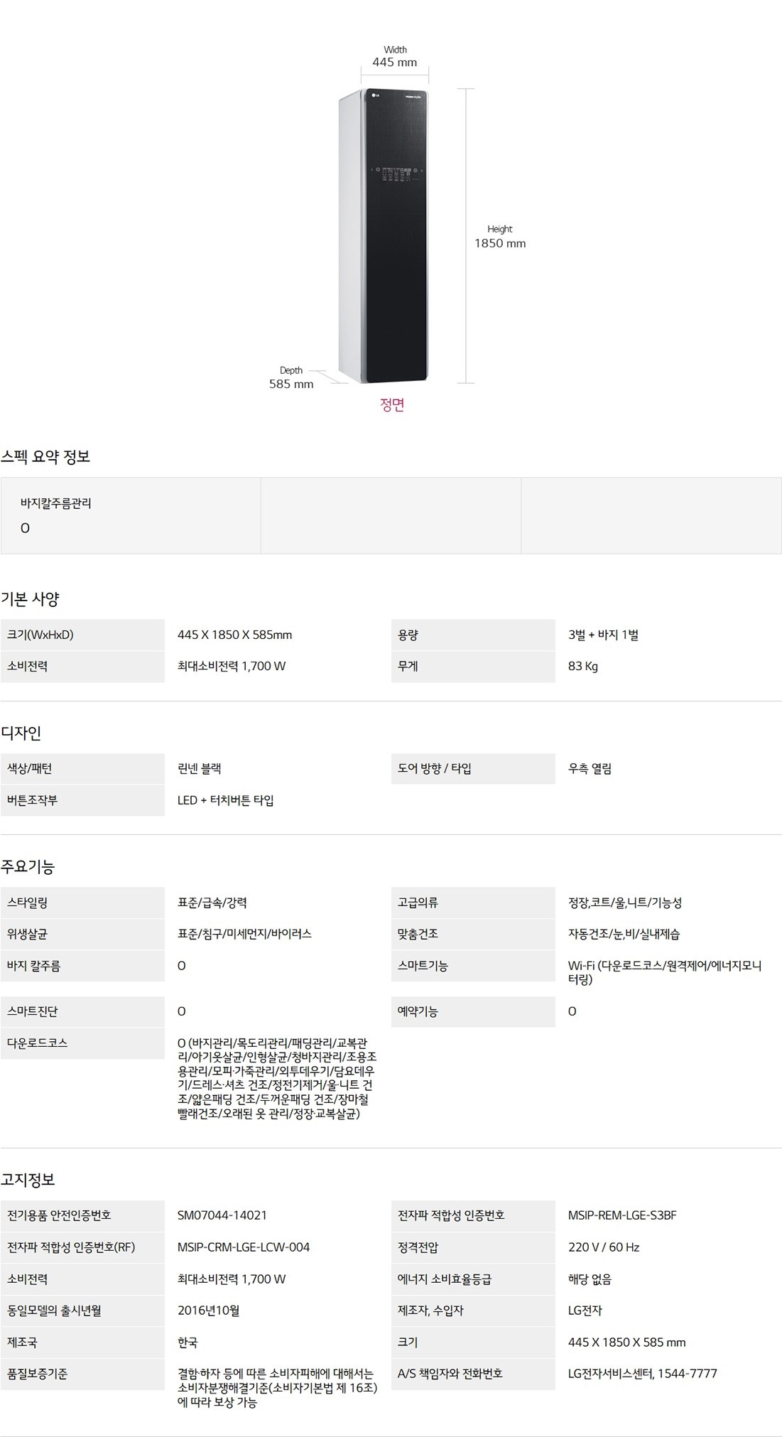 LG 트롬스타일러 /린넨블랙 (3벌+바지1벌) [ 스마트렌탈]
