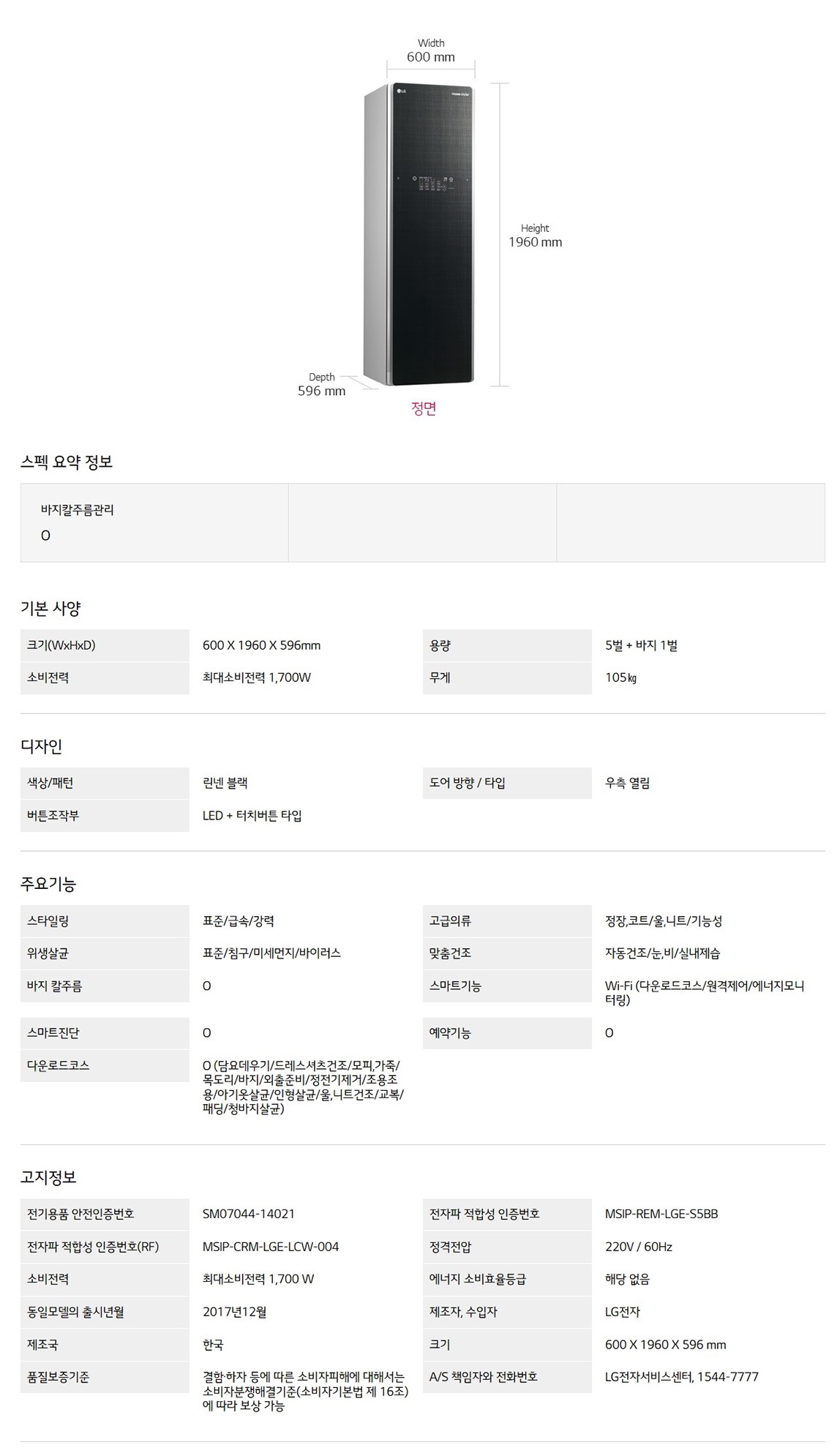 LG TROM 스타일러 /린넨블랙 (5벌+바지1벌) [ 스마트렌탈]