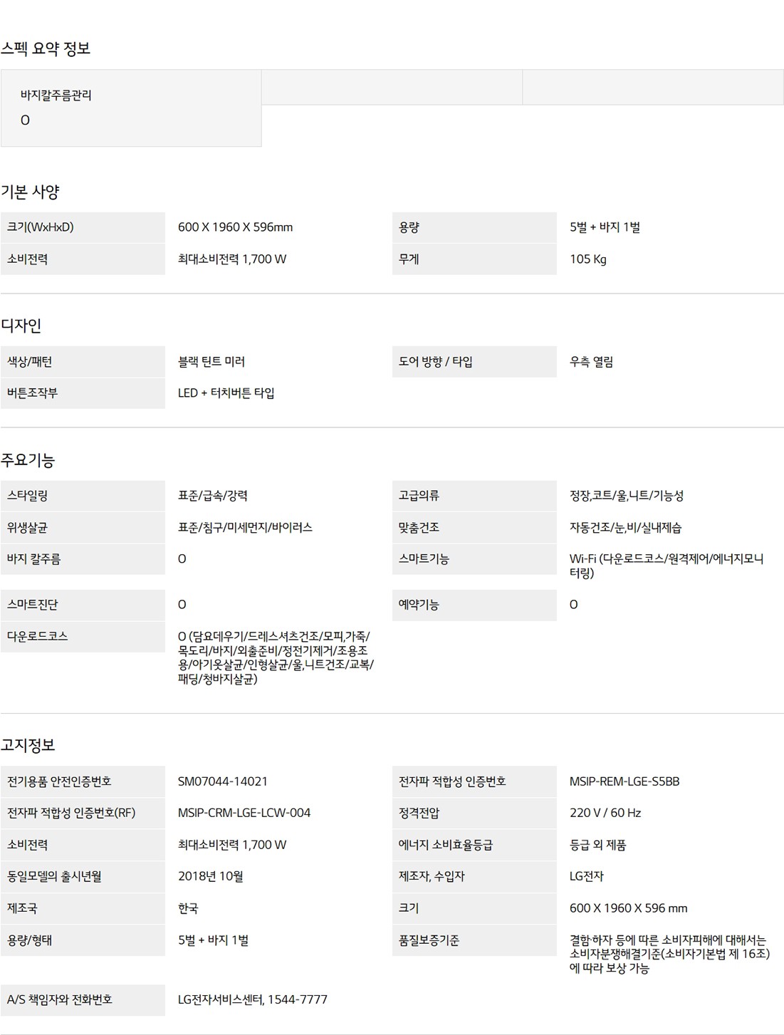 LG TROM 스타일러 /브랙틴트미러(5벌+바지1벌) [스마트렌탈]