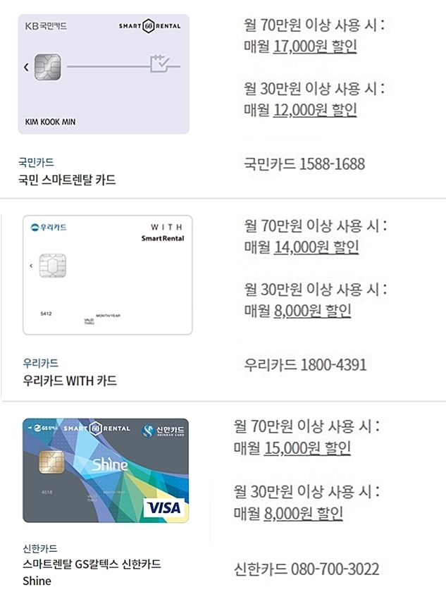 제휴카드 할인 월 8,000 ~ 17,000원