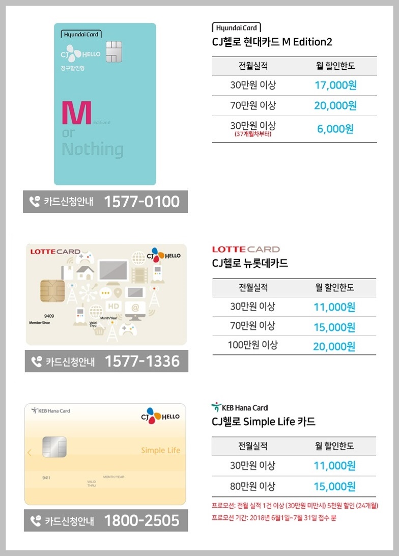 제휴카드 할인 월 11,000 - 20,000원