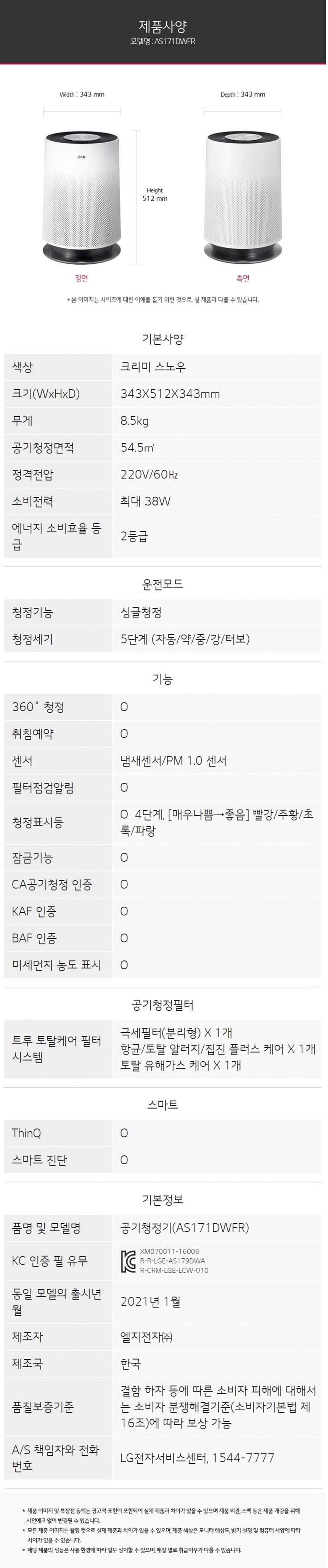 모델명 : AS171DWFR (21년형)