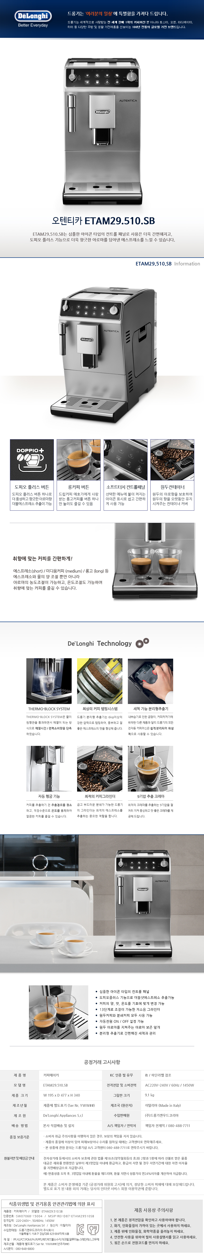 드롱기] 오텐티카 전자동 에스프레소 커피머신