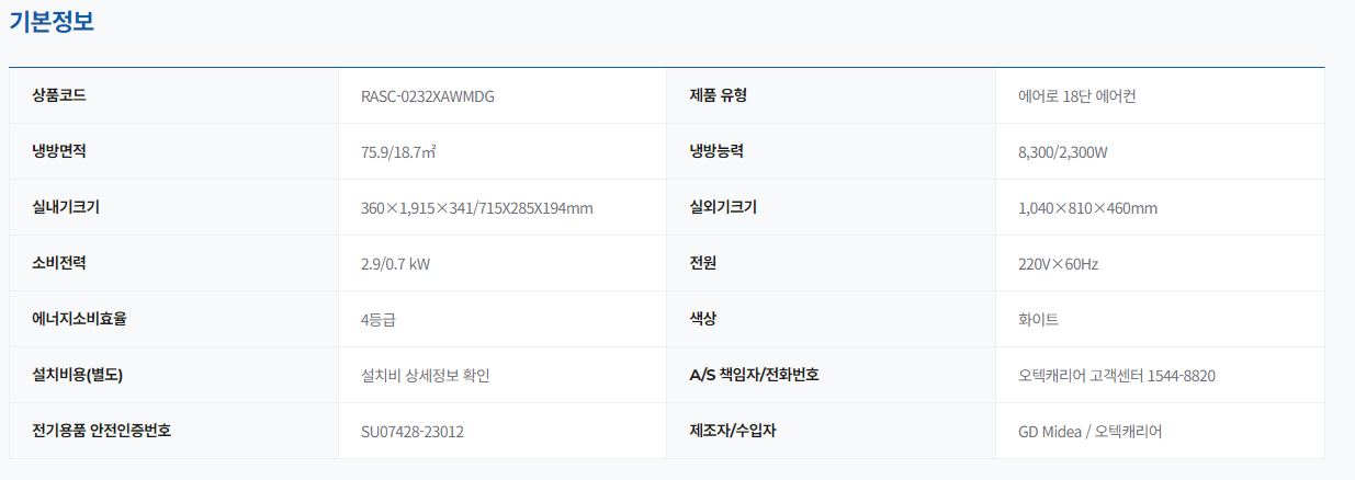 모델명 : RASC-0232XAWMDG