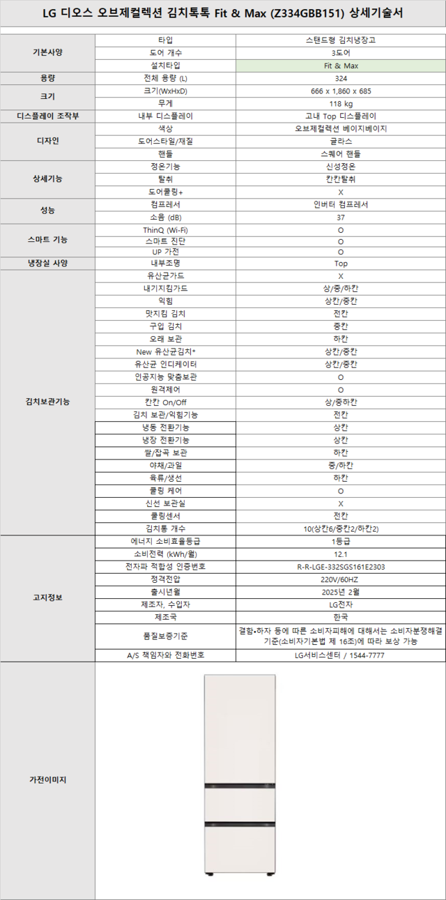 소노아임레디330 IV(4) LG 오브제 김치냉장고(김치톡톡) 324L