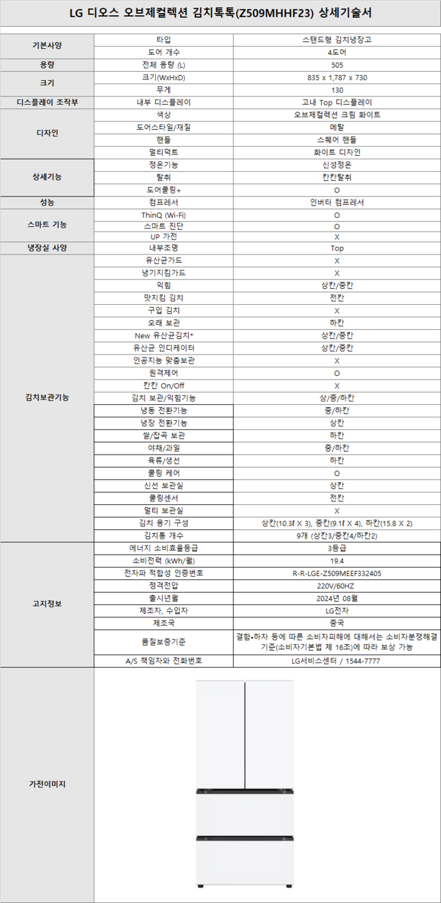 소노아임레디330 IV(4) LG 오브제 김치냉장고(김치톡톡) 505L