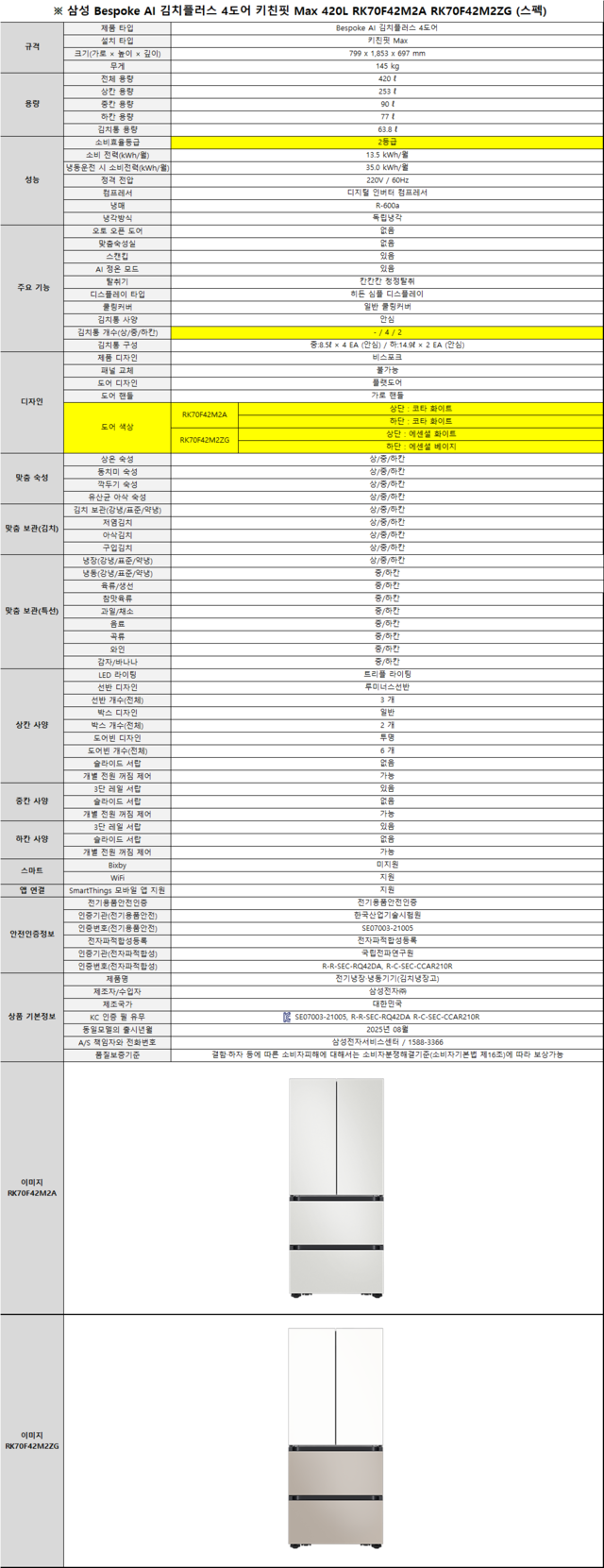 소노아임레디 IV 삼성 비스포크 김치냉장고 키친핏 420L