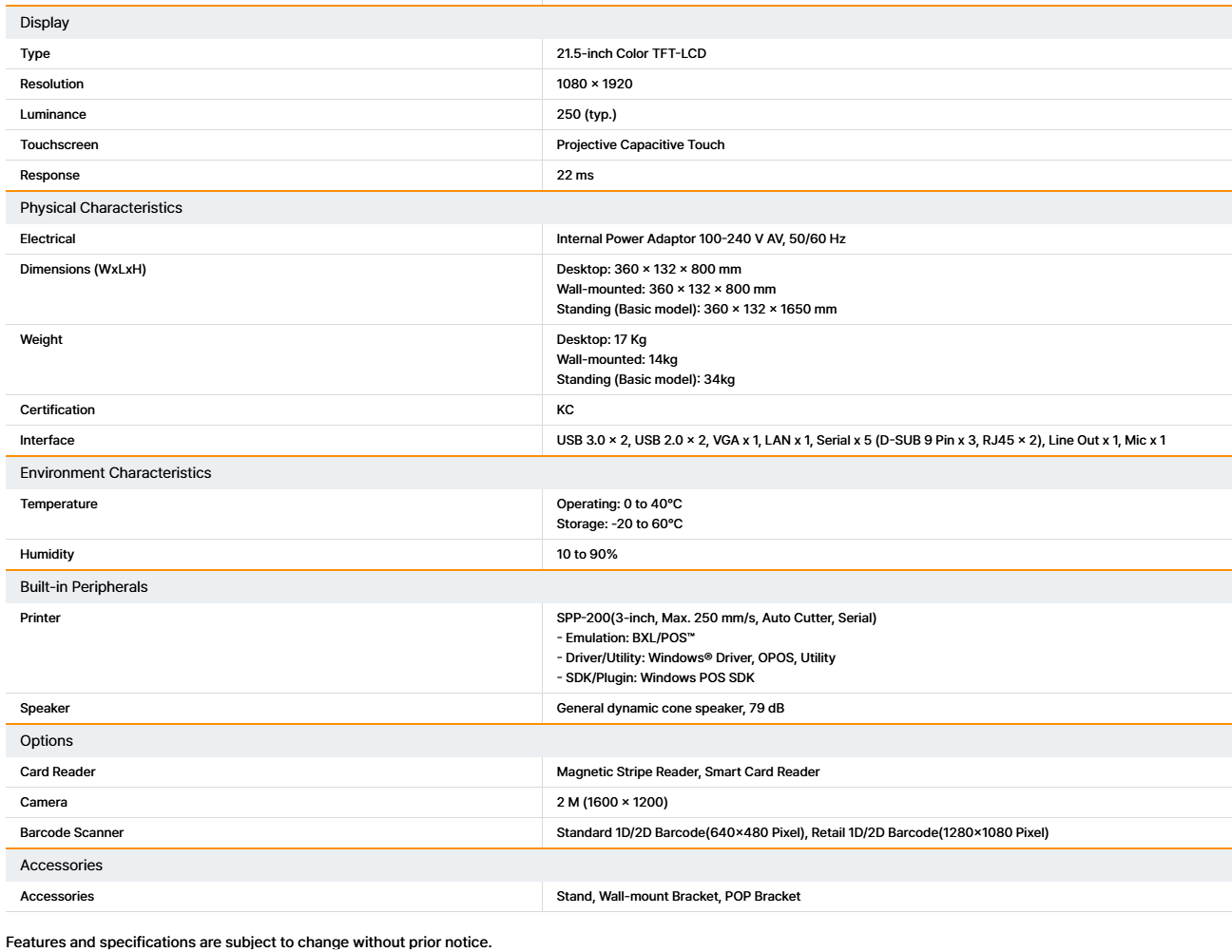 빅슬론 키오스크 21.5인치 터치 모니터 K1-21 (카드 전용) - 고성능 스캐너 포함