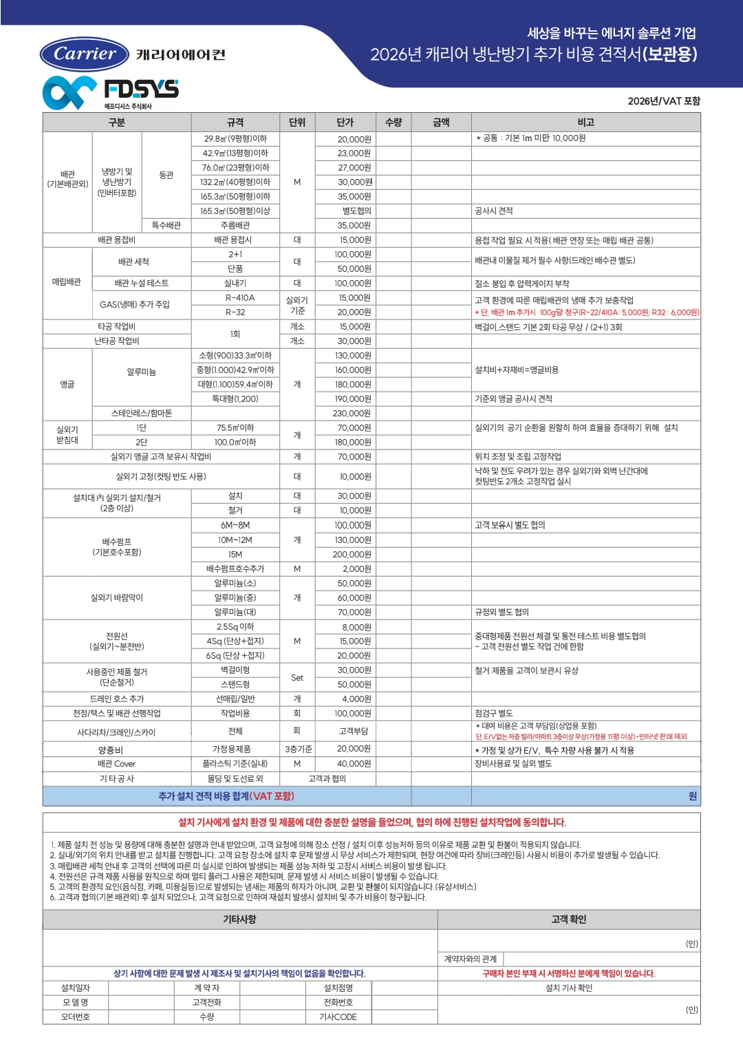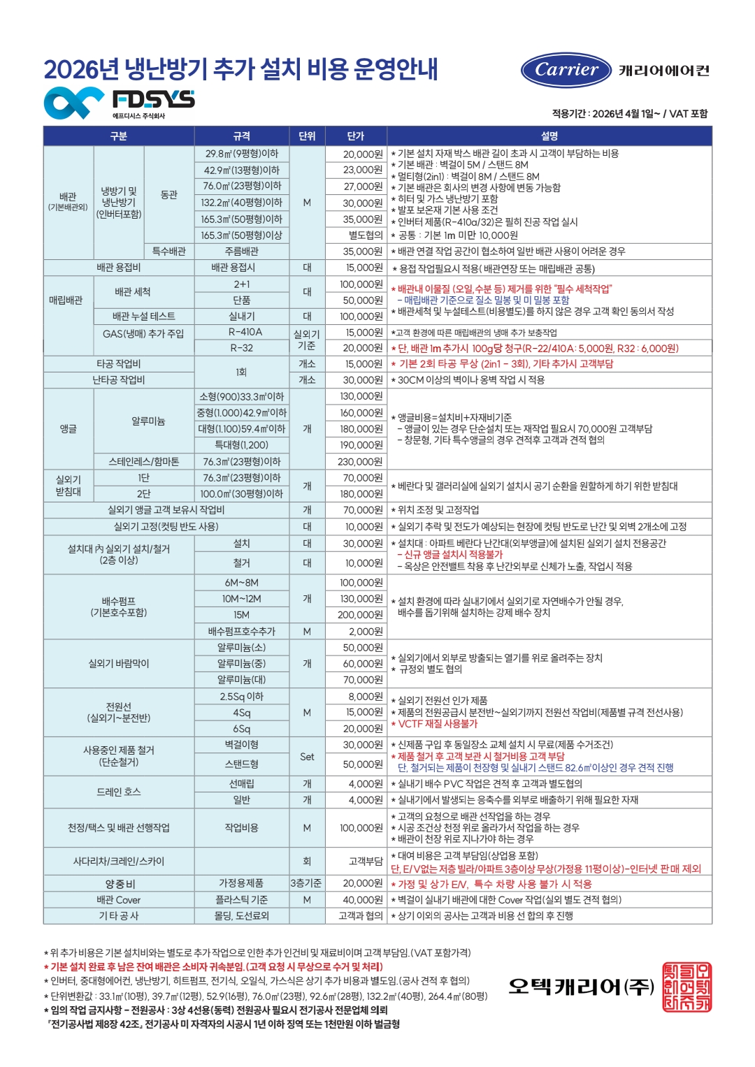 캐리어냉난방기렌탈 추가설치비용